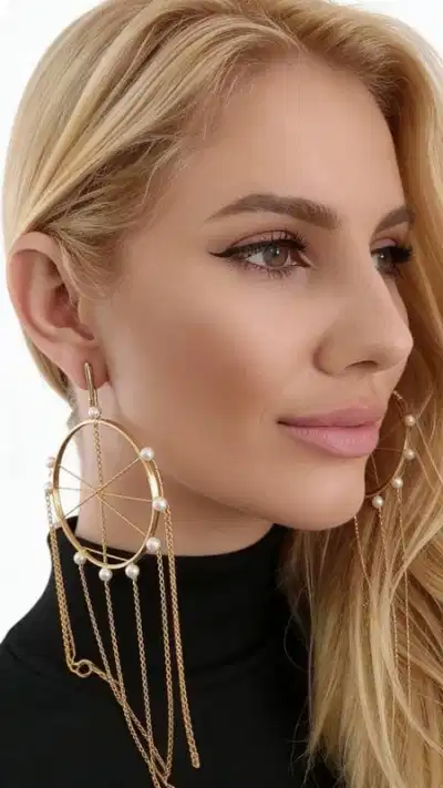 Ανακαλύψτε τη μαγεία των μεγάλων εντυπωσιακών σκουλαρικιών κρεμαστών με πέρλες που θα μεταμορφώσουν κάθε σας εμφάνιση. Αυτά τα μοναδικά χειροποίητα σκουλαρίκια "Ονειροπαγίδα", σχεδιασμένα από την Ελληνίδα Σχεδιάστρια Κοσμημάτων Αικατερίνη Χαλκιαδάκη, συνδυάζουν τη σύγχρονη αισθητική με την παραδοσιακή ελληνική τεχνοτροπία. Κατασκευασμένα από υψηλής ποιότητας ορείχαλκο με χρυσή απόχρωση, τα σκουλαρίκια διαθέτουν γεωμετρικό σχέδιο κύκλων που στολίζονται με φυσικές πέρλες. Οι κρεμαστές αλυσίδες δημιουργούν μια κομψή κίνηση που προσελκύει τα βλέμματα, ενώ το statement design τους τα καθιστά ιδανικά για ιδιαίτερες στιγμές. Τα μακριά σκουλαρίκια συνδυάζονται τέλεια με βραδινά σύνολα, νυφικές εμφανίσεις ή boho chic looks, προσφέροντας μια πινελιά πολυτέλειας και μυστηρίου. Η εργονομική τους κατασκευή εξασφαλίζει άνεση όλη μέρα.
