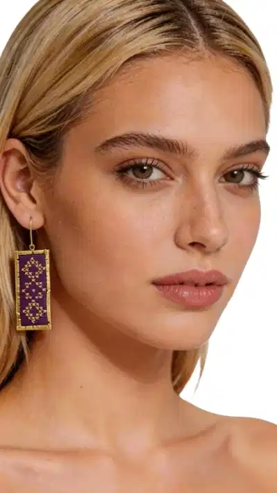 Τα statement κεντητά σκουλαρίκια με γεωμετρικά σχέδια από χρυσοκλωστή σε εντυπωσιακό μπορντό χρώμα είναι το τέλειο αξεσουάρ για κάθε γυναίκα που θέλει να ξεχωρίσει. Σχεδιασμένα από την Ελληνίδα Σχεδιάστρια Κοσμημάτων Αικατερίνη Χαλκιαδάκη, αυτά τα χειροποίητα σκουλαρίκια συνδυάζουν την παραδοσιακή τέχνη του κεντήματος με μοντέρνο design. Η πολυτελής χρυσοκλωστή δημιουργεί εκλεπτυσμένα γεωμετρικά μοτίβα που αναδεικνύουν τη μαεστρία της ελληνικής χειροτεχνίας. Το βαθύ μπορντό χρώμα προσφέρει κομψότητα και στυλ, ενώ το ορθογώνιο σχήμα των σκουλαρικιών τους κάνει ιδανικούς για επίσημες εκδηλώσεις, γάμους ή βραδινές εξόδους. Αυτά τα εντυπωσιακά κρεμαστά σκουλαρίκια είναι κατάλληλα για γυναίκες που αγαπούν τα πρωτότυπα χειροποίητα κοσμήματα με ιδιαίτερη αισθητική. Συνδυάζονται τέλεια με μονόχρωμα outfits και δίνουν μια boho πινελιά στο look σας. Υλικό: Ορείχαλκος, Ύφασμα Για τη διατήρηση της ομορφιάς τους, φυλάσσετε τα σκουλαρίκια σε στεγνό μέρος και αποφεύγετε την επαφή με νερό και χημικά προϊόντα.